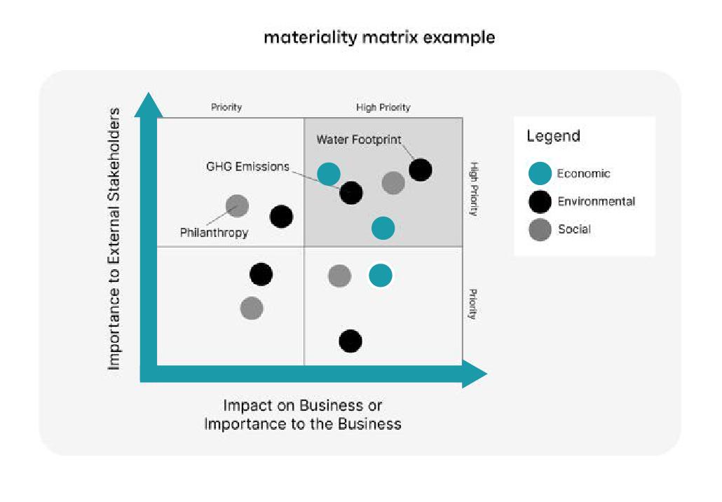 Because ESG means different things to every company depending on your industry, geography, and local regulations, you’ll need to conduct a materiality assessment to establish which issues are important.